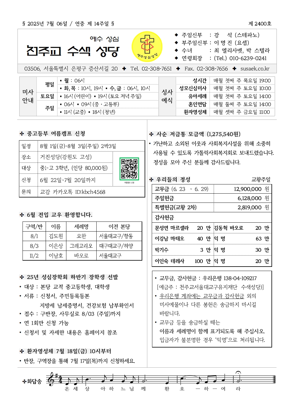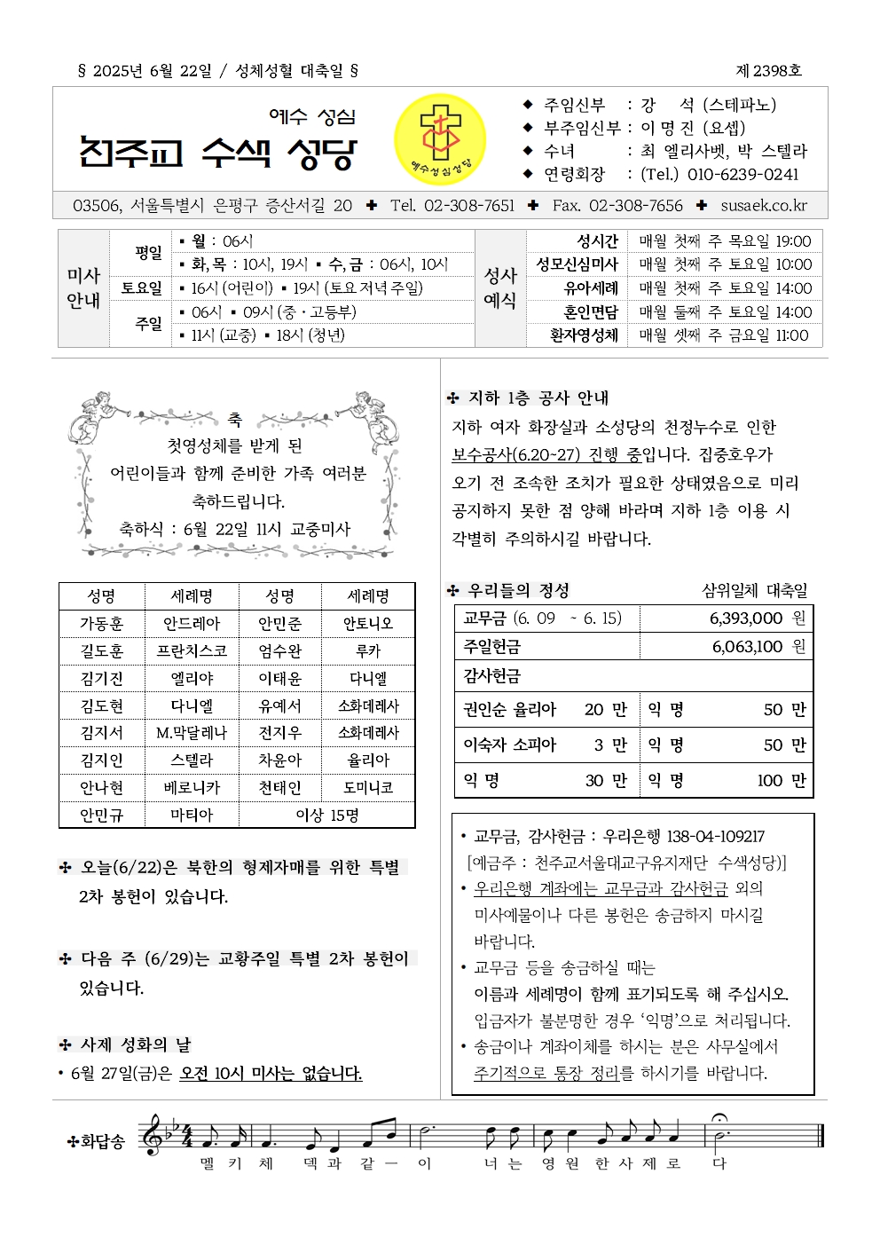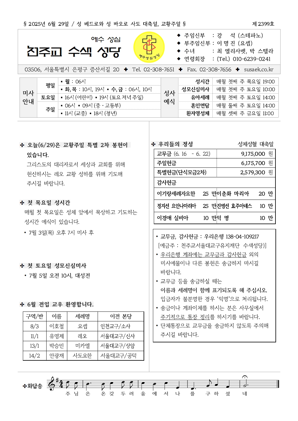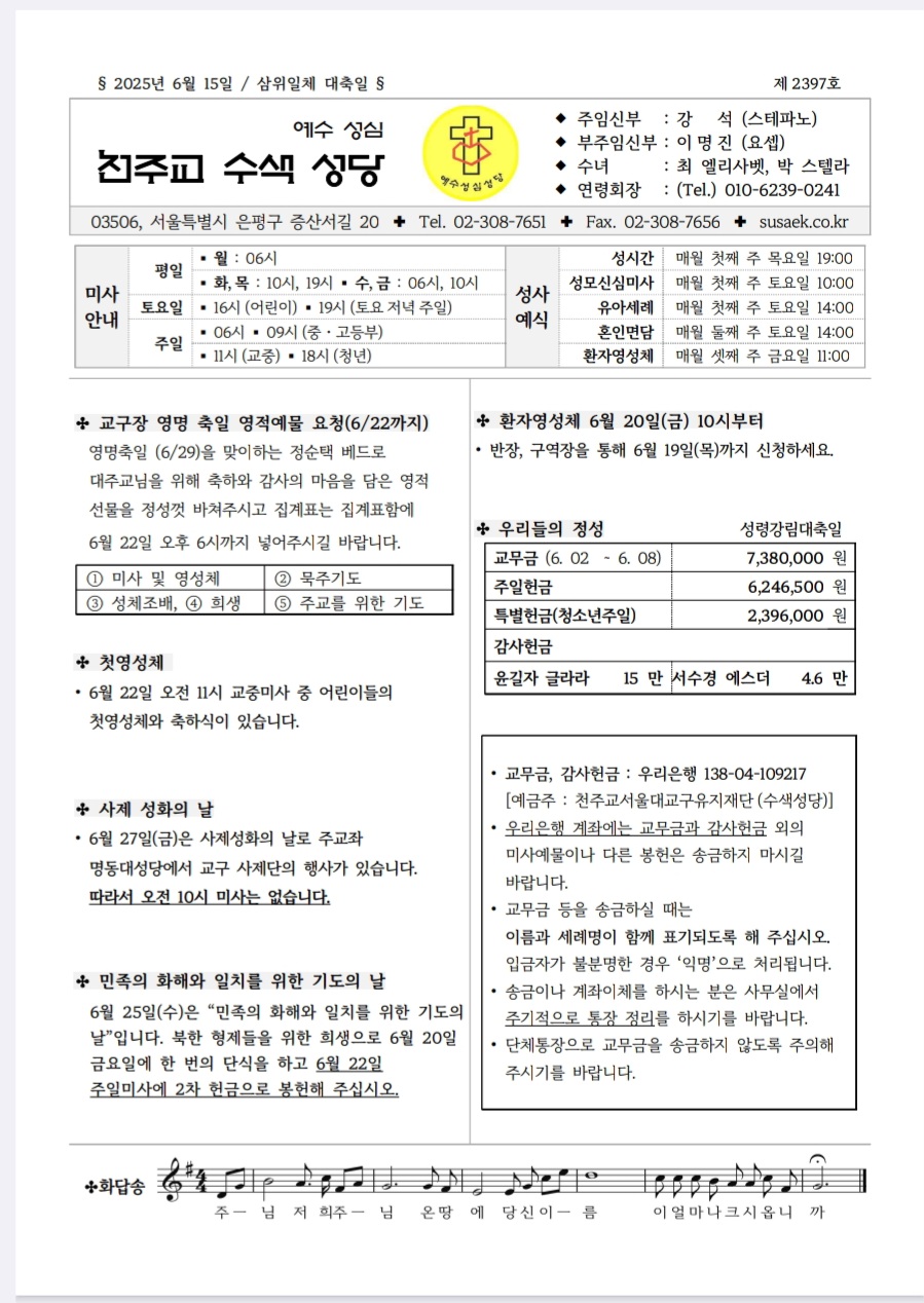 | 54 | 성베드로와 성바오로 대축일, 교황주일 | 관리자 | 2025-06-26 | 105 |